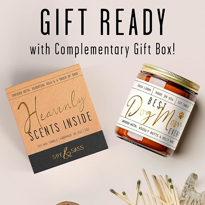 Dog Mom Gifts for Women, Dog Lovers Gifts for Women - 'Best Dog Mom Ever' Soy Candle, w/Fresh Linen I Gifts for Dog Lovers I Dog Gifts for Women I 9oz Reusable Jar, 50Hr Burn, Made in USA