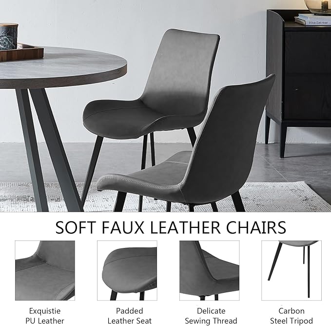- [Modern Dining Chair] This leather dining chair is made of high-quality PU leather wrapped with ergonomic curved backs and high elastic sponge, which is comfortable. Carbon steel legs will not deform.