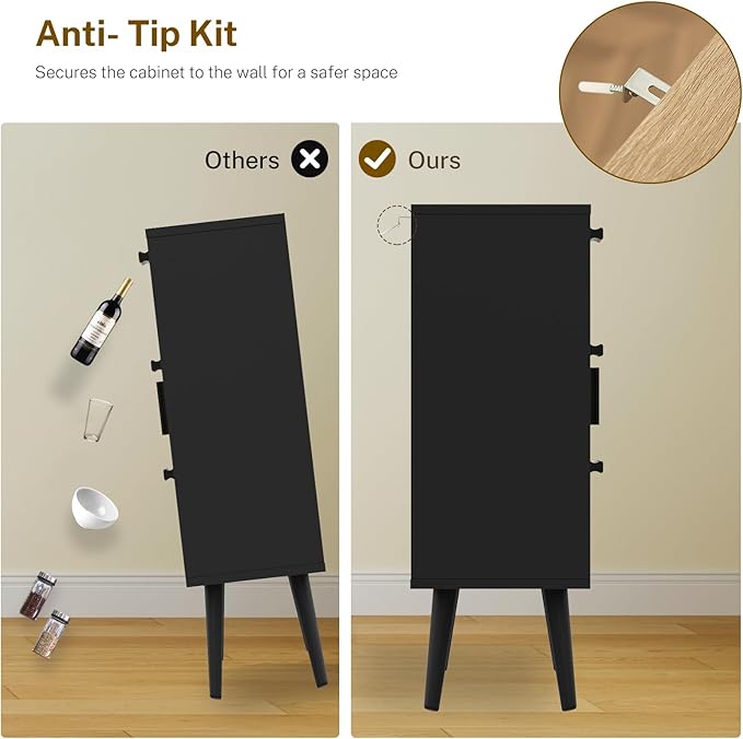 - ⭐【More Stable Than It Look】Our rattan cabinet is made of premium MDF (P2 grade) and solid wood leg which promises a long service life and boasts great stability(Can support weight 150lbs). Environmentally friendly surface ensures no harm and odorless. We attach anti-toppling fittings helps secure it to the wall for a safer living space.