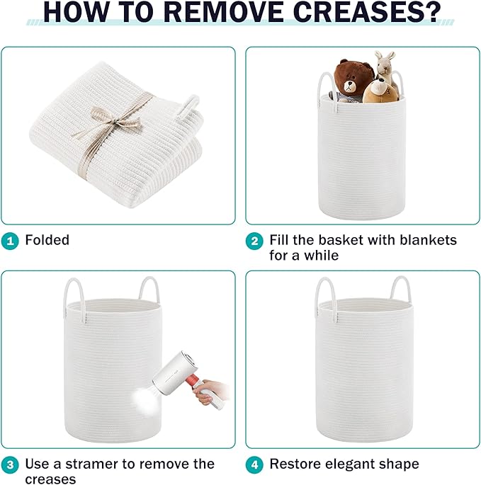 - 【Multipurpose Storage Baskets】58L capacity basket can keep things organized in a stylish and decorative way. You can use them to store extra towels, blanket, clothing, toys for baby and dogs, books, pillows or any other household items around the house, anything you can imagine