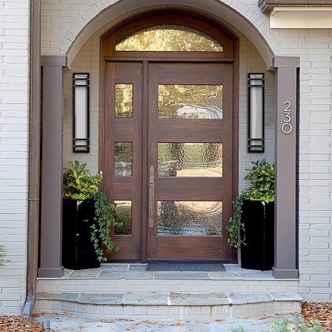- 【LED Porch & Patio Wall Lights 23.6in】 Size:23.62in*4.92*3.07in,Watts: LED 36w,Input Voltage:85-265V,Temp:3000k,Frequency:50HZ,Light source: 108*LED chips with 3480LM illumination, Low power consumption and energy saving.Average lifespan of 50000 hours.