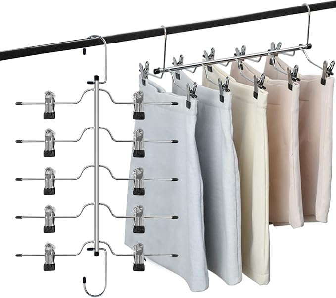 - 💘【Two ways hanging】Skirt hanger organizer have two hooks on both sides which can hanging clothing on horizontally or vertically, and the hooks can be 360 degrees flipped back and forth, meets your various needs of different hanging angles,enable you to hang multiple garments more easily without worrying about the fabric being wrinkled