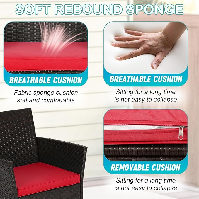 - ♬【STRONG & STURDY】-This patio furniture set is made with a powder-coated steel frame and all-weather PE rattan wicker for a comfortable experience.The wicker of the Outdoor furniture set is sturdy but also very light. The seat cushion of this patio Conversation Set can be removed for easy cleaning.