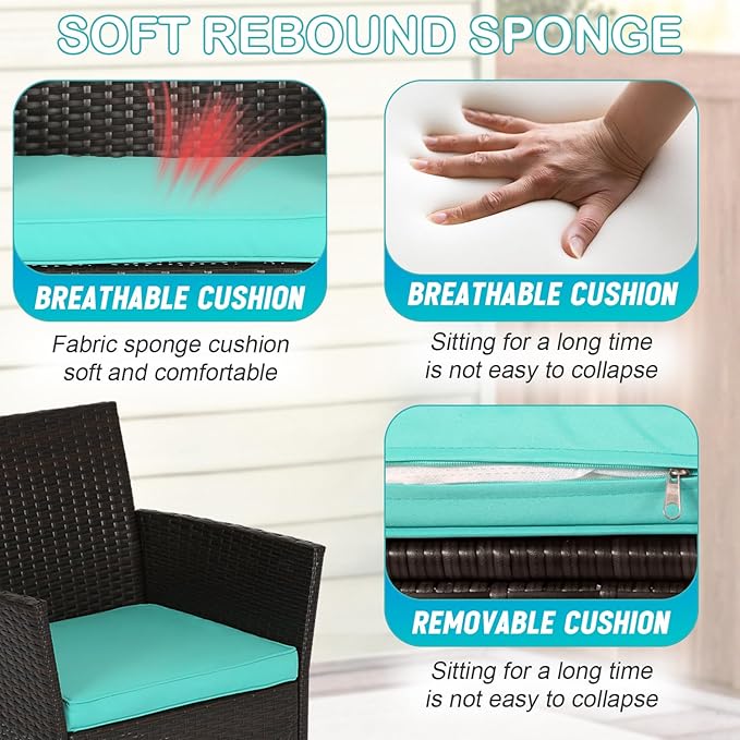 - ♬【STRONG & STURDY】-This patio furniture set is made with a powder-coated steel frame and all-weather PE rattan wicker for a comfortable experience.The wicker of the Outdoor furniture set is sturdy but also very light. The seat cushion of this patio Conversation Set can be removed for easy cleaning.