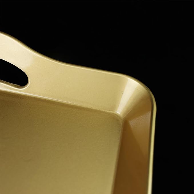 Gold Decorative Tray for Coffee Table with Handles, Plastic Rectangular Serving Tray for Living Room, Bathroom, Outdoors, 11.8"*17.3"
