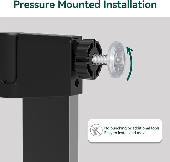 - EASY TO SET UP: Simple and quick pressure installation, not require additional tools and no holes in the wall. It is equipped with an auto-close feature that gently closes the door and a stay-open feature that keeps it open. The baby gate can be opened easily with one-hand operation even while holding a baby.