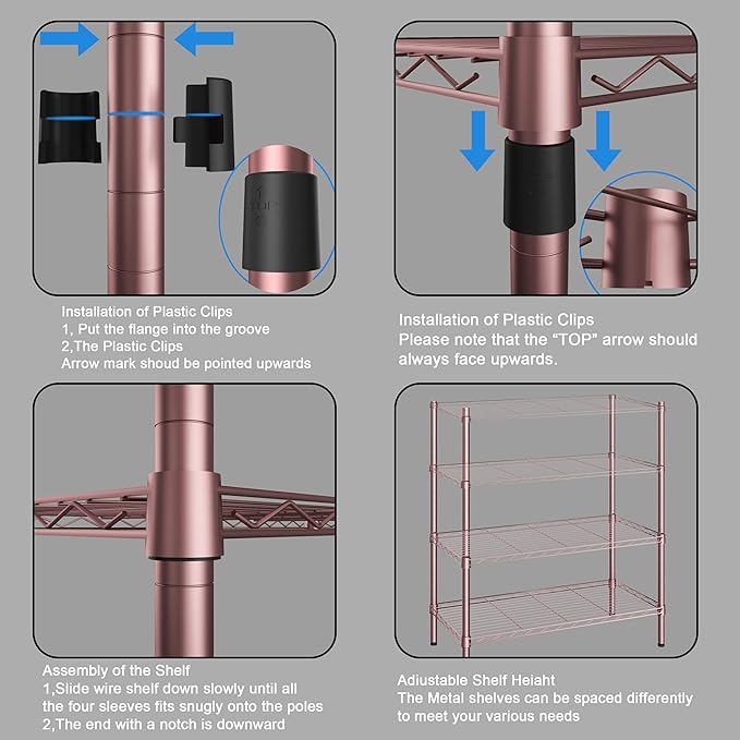 - Easy to Assemble: A rubber mallet is recommended, but it's not included. Just be sure to read the assembly directions carefully BEFORE you start putting it together. Certain shelves must be installed in a particular order,the position of the shelf assembly can be adjusted according to your needs. Moreover, the height can be adjusted with a slip-sleeve locking system by increments of 1 inch each time.Can be assembled into 2 styles, straight-lined shape or L shape.
