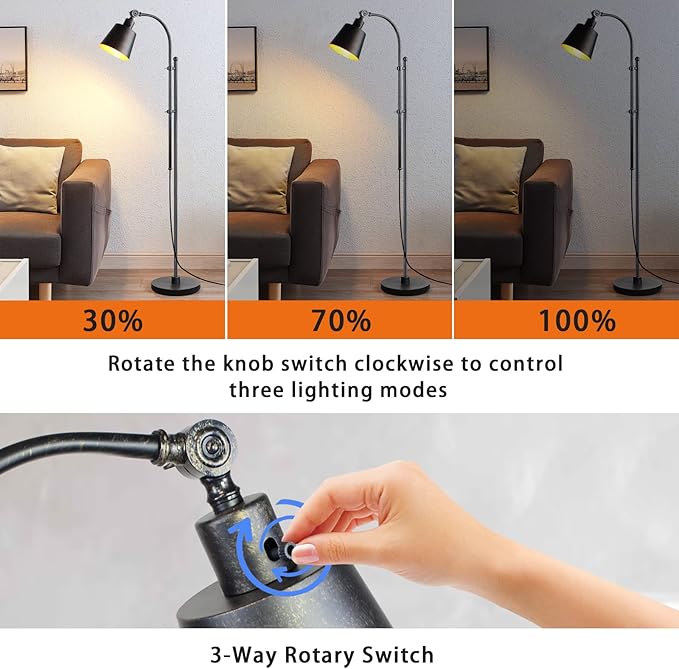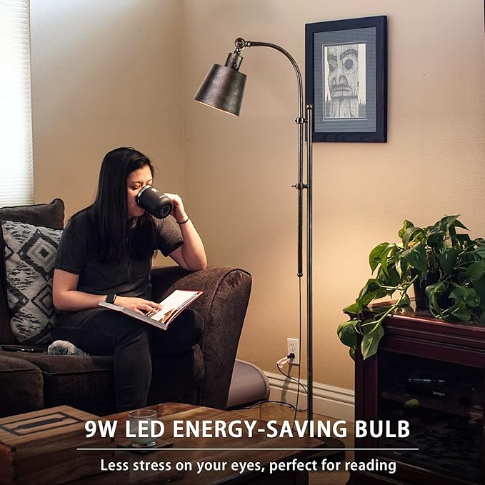 - ADJUSTABLE FLOOR LAMP: Adjust height between 34.25'' and 57.48'' to accommodate various spaces. Create custom lighting moods by swiveling the lamp head 180° for uplight or downlight. Concentrate the light downward for reading or crafts such as sewing and knitting. This floor standing lamp is sure to add a vintage vibe to your space, no matter where you set it.