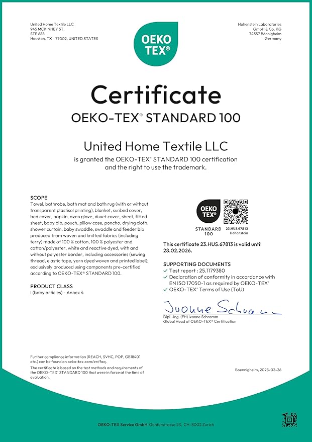 - ✔ OEKO-TEX STANDARD 100 23.HUS.67813 Hohenstein Certified and Tested for Harmful Substances