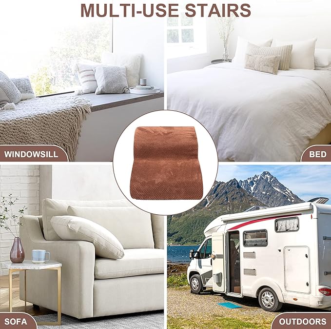 - [Easy to Assemble and Clean]: The stair cover is made of high-quality non-slip corduroy, it's easy to install, remove the cover and wash it in the machine. The rebound foam stairs are stable and not easy to deform, can be light vacuumed