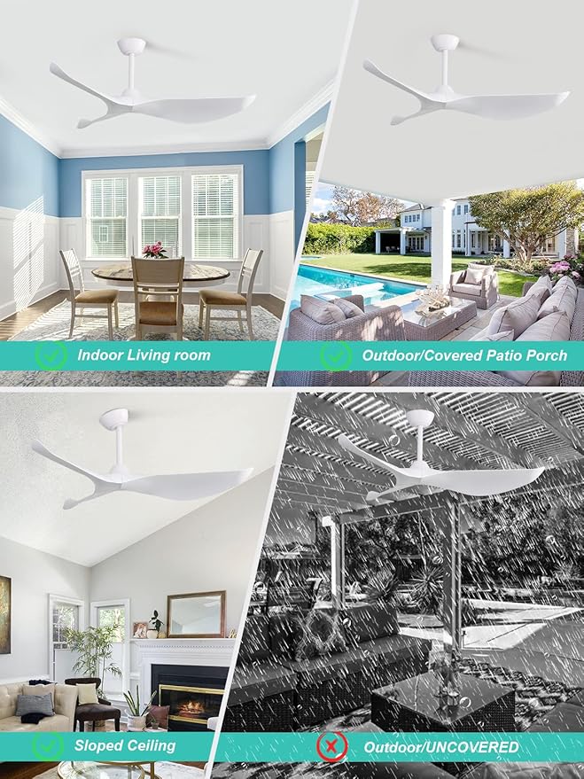 - Personal/Commercial Mordern Ceiling Fan: With 3 durable ABS fan blades and powerful DC motor, the farmhouse ceiling fan shows a morden elegant style and produce more powerful wind than other ceiling fans. Not just for personal house, but also for commercial shop decoration, coffee shop, restaurant, mall interior decoration etc.