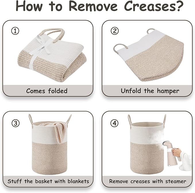 - ❤【Restore Elegant Shape】 To improve shipping efficiency, foldable woven rope hampers are packed compactly. You can put some blankets or small quilts in it and give it some time to regain its shape. Iron is a great idea to remove the creases.