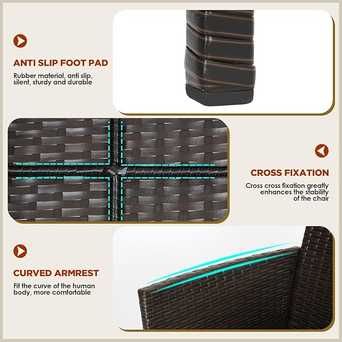 - SPACE-SAVING & VERSATILE: This patio conversation set fits small patios, balconies, and gardens. Compact and practical, this design saves space while providing easy storage for outdoor essentials.