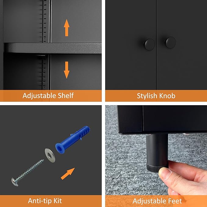 - THOUGHTFUL DESIGN - This metal storage cabinet comes with leg levelers for leveling on uneven ground and keeping the floor from scratching. Moreover, an optional wall anchoring kit is included for anti-tipping purpose