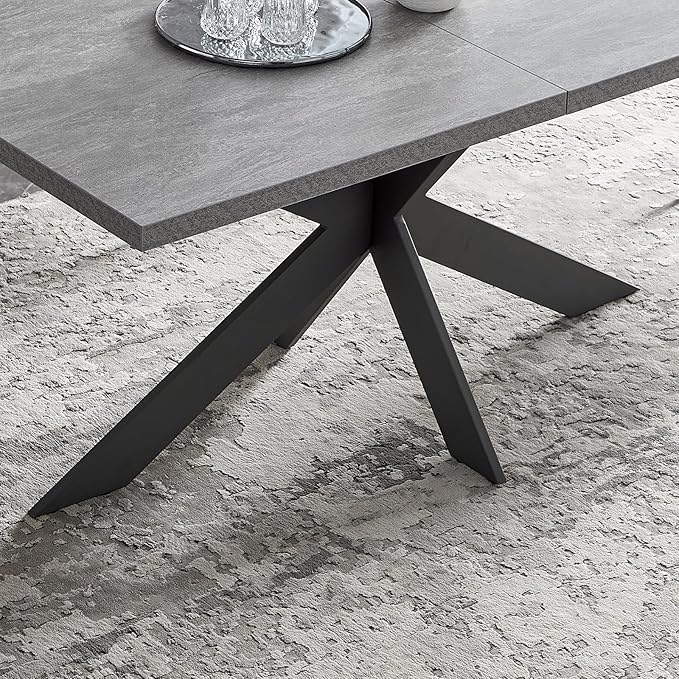 ZckyCine 6-8 Person Modern Rectangular Dining Table Set, 51-67 Inch Expandable Space-Saving Metal Frame Dining Table with Gray Table and 6 Black Chairs for Kitchen or Dining Room