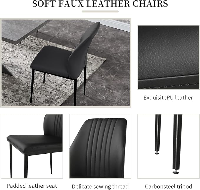 - Premium Leather Upholstered Dining Chairs: Our dining chairs are cushioned with premium faux leather and high resilient foam. The dining chairs have metal tubular legs that sturdily support the seat with a high weight capacity. Maximum weight-bearing capacity: 300 lbs. The seat and backrest of the stool are ergonomically curved, softer and thicker.