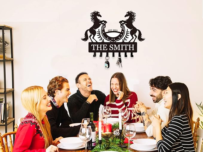 - Brighten Up Your Home's Entrance :Personalized metal key holder for wall is a useful gift that makes a great addition to your home decor due to its being customized with an elegant design containing personalization details like names, last name, and date.And since it marries functionality with a beautiful exterior, our Personalized key rack for wall brighten up your home's entrance.