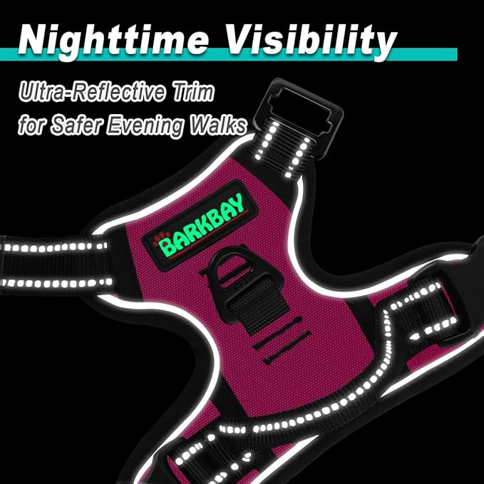 BARKBAY Dog Harness No Pull 3 Buckles for Large Dogs - Adjustable, Reflective, Comfortable, No Choke, Heavy-Duty - Perfect for Outdoor Training, Walking, and Hiking - Strong & Durable - L & Pink