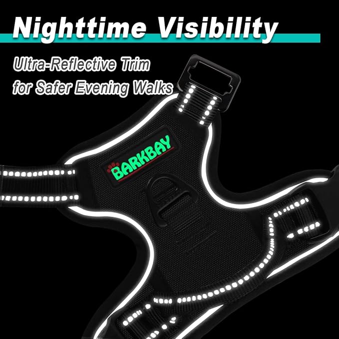 BARKBAY Dog Harness No Pull 3 Buckles for Medium Dogs - Adjustable, Reflective, Comfortable, No Choke, Heavy-Duty - Perfect for Outdoor Training, Walking, and Hiking - Strong & Durable - M & Black