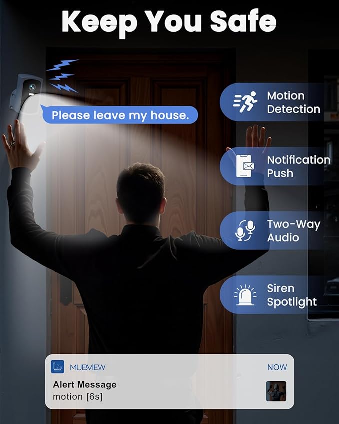 - ๐๐๐ ๐๐ฏ๐๐ซ๐ฒ๐ญ๐ก๐ข๐ง๐ ๐ข๐ง ๐๐: Mubview cameras for home security captures crystal-clear 2K (2304ร1296P) images and videos, day or night. With color night vision and a monitoring distance of up to 55 feet, you'll never miss a thing.