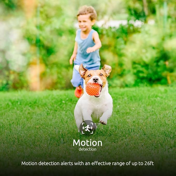 - DETECT & VIEW FOOTAGE ANYWHERE: The motion sensors can detect movement from 26ft away and then send a notification to your smartphone. Check on your security and speak with your family using two-way communication when on the go. Perfect for keeping an eye on the babysitter or dog while you are out.