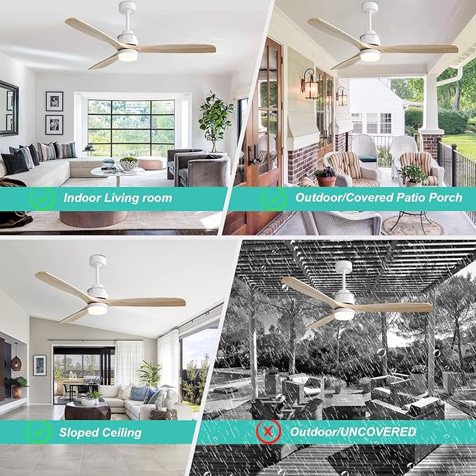 - Recommended Uses For Product : Indoor and outdoor cooling, air circulation, ventilation with reversible DC motor for summer winter use, suitable living rooms, bedrooms, patios modern wood design integrated LED lights Indoor and outdoor cooling, air circulation, ventilation with reversible DC motor for summer winter use, suitable living rooms, bedrooms, patios modern wood design integrated… See more
