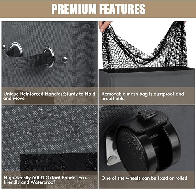 - 4 WHEELS - The laundry hamper on wheels is easy to move, brake on one of the wheels ensure safety for home use