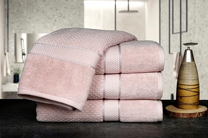 Ample Decor 100% Cotton Soft Pink Bath Towel for Bathroom Set of 4 Popcorn Textured - Super Soft, Quick-Dry, Highly Absorbent, Lightweight, Machine Washable - Mulaayam Collection - 30 X 54 Inch