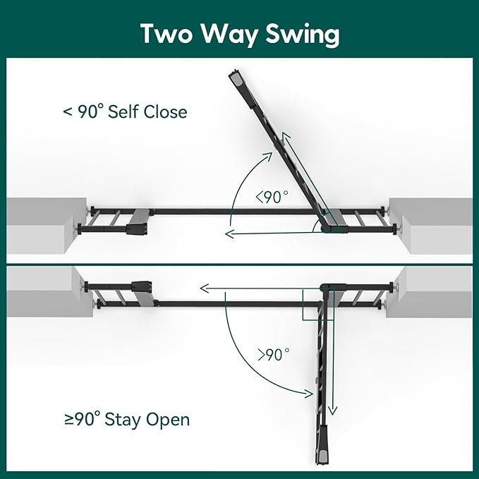 - EASY TO SET UP: Simple and quick pressure installation, not require additional tools and no holes in the wall. It is equipped with an auto-close feature that gently closes the door and a stay-open feature that keeps it open. The baby gate can be opened easily with one-hand operation even while holding a baby.