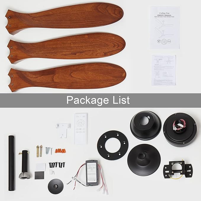 - 【Modern Walnut Ceiling Fan】: Our 60 inch ceiling fan features 3 wooden blades and a moisture-proof design, making it ideal for both indoor spaces and covered outdoor areas. Equipped with a remote control, this ceiling fan boasts a unique aesthetic that perfectly complements any home decor, elevating your space’s decorative appeal. Its minimalist retro style with a propeller-inspired design makes it a striking focal point.