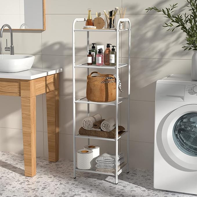 MAX Houser Storage Rack with Shelf,Industrial Style Extendable Plant Stand, Standing Shelf Units for Kitchen, Bathroom, Office,Living Room, Balcony, Kitchen (White, 5 Tier)
