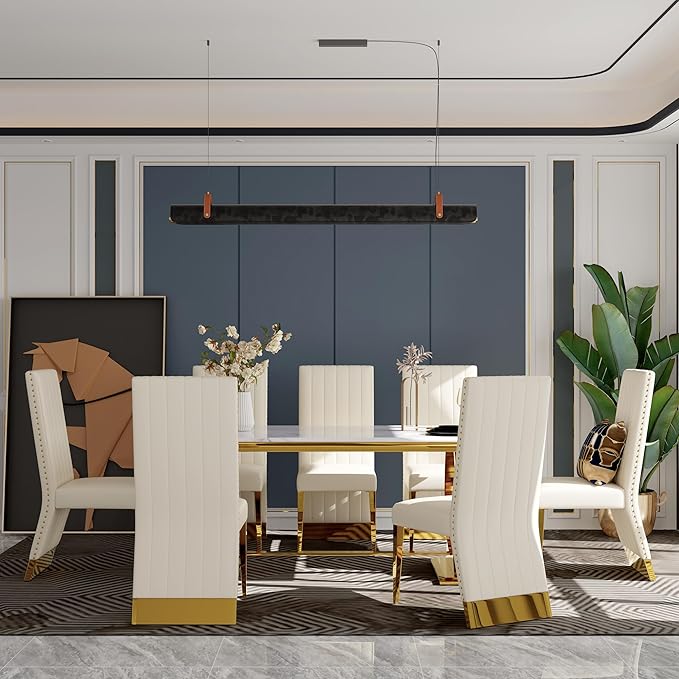 - UNMATCHED LUXURY – Anewsun white leather dining chairs bring a perfect blend of elegance and sophistication, featuring a striking design with chic gold accents. Designed to impress, they’ll effortlessly become the centerpiece of your dining space.