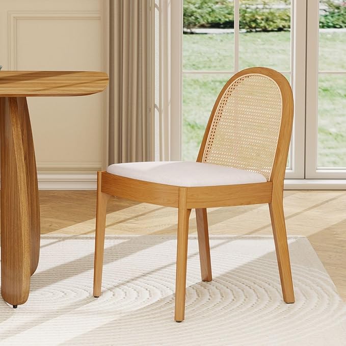 - Vintage Inspiration: This modern dining chair features its hand-woven natural rattan backrest and linen fabric cushion seat, their retro, but contemporary look will bring your home together with a classic touch