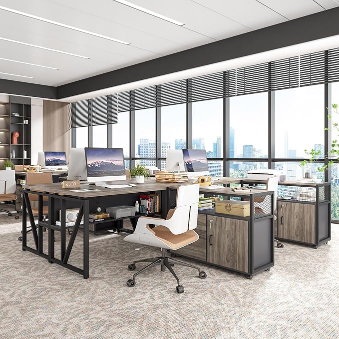 - 【Freestanding 2 piece Home Offices Furniture Set】: 55 inches computer desk and 32 inch filing cabinet, you will love the versatility of having 2 pieces that can be put together for an l-shaped desk to extend your workspace or separate for a different look.