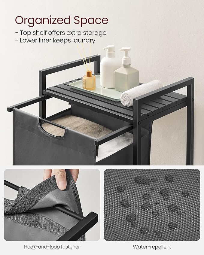 - [Versatile] This versatile laundry sorter fits seamlessly into any room, whether it's your laundry room, bathroom, or bedroom. Should there be any water on the shelf during use, immediately wipe it off with a dry cloth