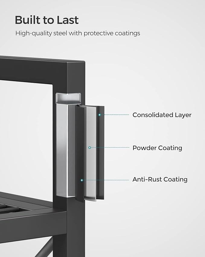 - [All-Metal Versatile Rack] The robust steel frame and mesh shelves combine into this durable storage rack. Use it in your entryway for shoes, in the kitchen for cooking utensils, and in your bathroom for toiletries for years to come