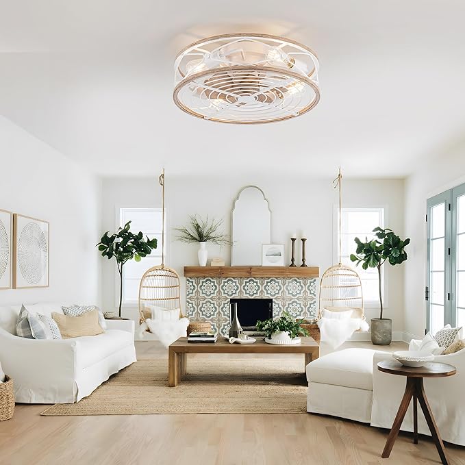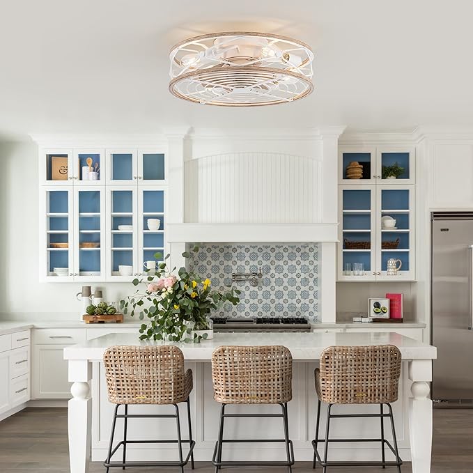 TIFEROR Flush Mount Ceiling Fan with Light, 20" Farmhouse Low Profile Ceiling Fan with Remote, Reversible Motor, Suitable for Bedroom, Kitchen, Dining Room, Hallway