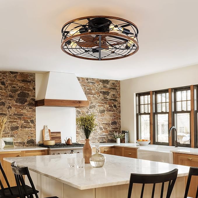 TIFEROR 24 Inch Low Profile Ceiling Fan with Light, Remote Control and 3-Speed Adjustment – Enjoy a Cool Breeze and Customize Your Comfort, Matte Black (5 E26 Bulb Include)