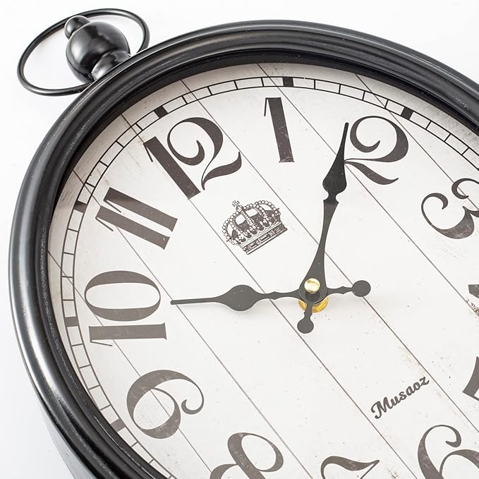 Oval Large Wall Clock Silent Non-Ticking Metal Battery Operated Retro Antique Design Rustic Vintage Style Decor for Living Room Kitchen Farmhouse 16 inch (Black, 16inches)