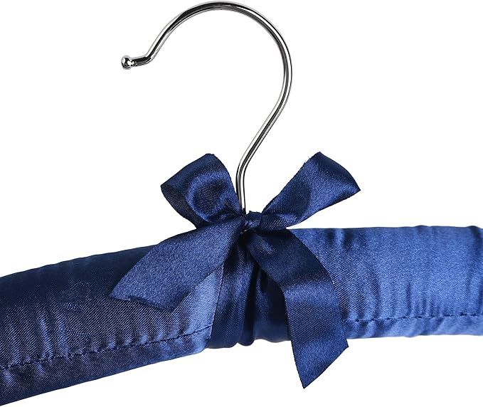 Blue Satin Padded Sweater Hangers 5 Pack, Blouse Hanger with Thick & Soft Foam for Bridal Wedding Dress Lingerie, Smooth Silk Covered Shirt Hanger Without Shoulder Bump