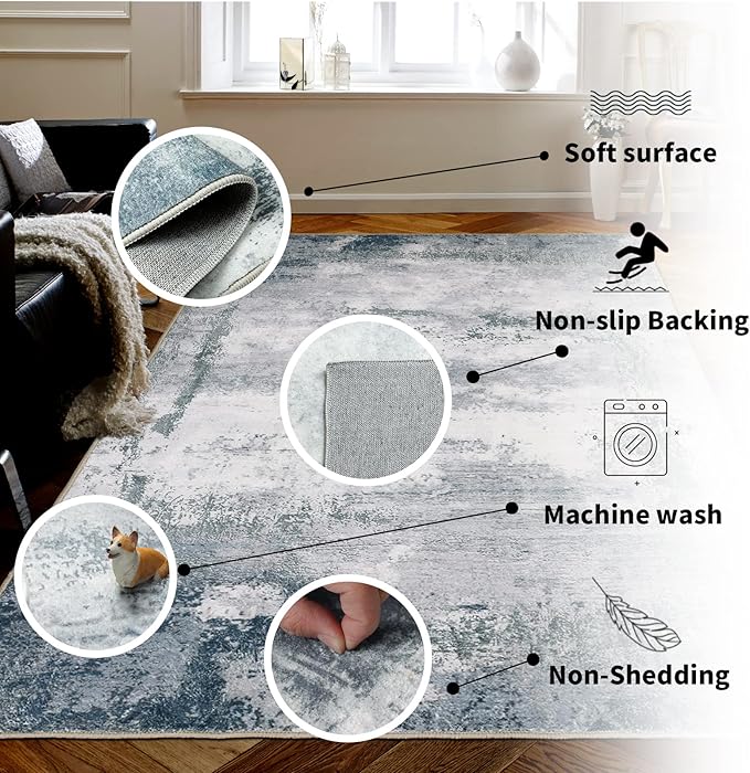 3x5 Modern Abstract Small Area Rug,Non Slip Stain Resistant Washable Area Rug with Rubber Backing,Non Shedding Floor Carpet for Living Room Bedroom Kitchen Entryway Indoor Mat