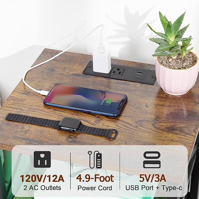 - Night Stand with Charging Station: This 15.75" D x 13.78" W x 23.62" H end table with charging station designed with AC outlets. The charging station with 4.9ft long power cord is ideal for charging your phone, laptop and other devices at once