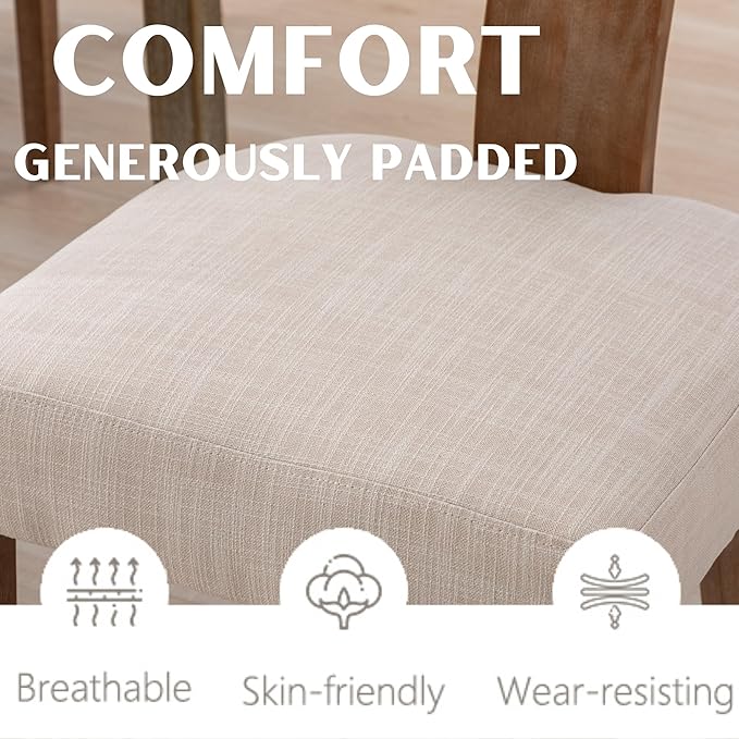Mid Century Modern Dining Chairs Set of 4 Upholstered Linen Fabric Dining Chairs Curved Backrest Farmhouse Dining Room Chairs Kitchen Chairs with Wood Legs, Beige
