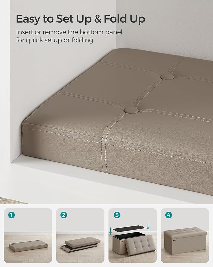 - 【QUICK ASSEMBLY, EASY FOLDAWAY】This storage ottoman from the SONGMICS MAZIE Collection has a foldable design that allows quick setup in seconds by simply inserting the bottom panel. Easily fold and store it under the bed or in a closet when not in use