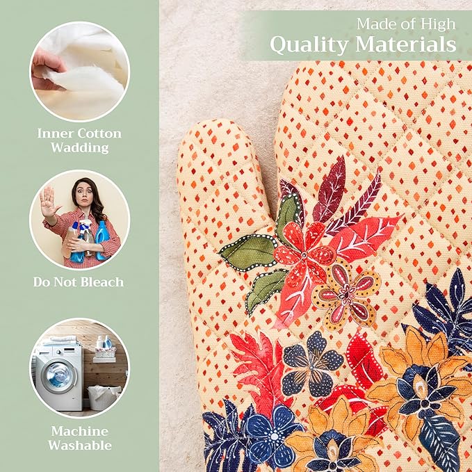 - Premium Quality: Crafted from quilted 100% cotton, this heat-resistant oven mitt protects your hands from hot cookware. It features a built-in hanging loop for easy storage and quick access. Perfect for everyday home kitchens, farmhouse kitchens, hotels, restaurants, and bakeries