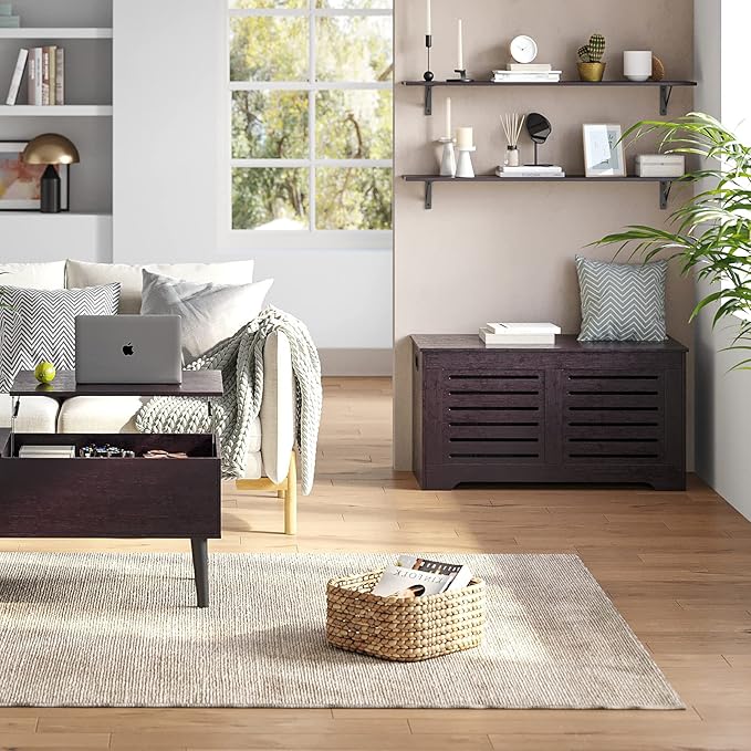 DINZI LVJ Long Wall Shelves, 47.3Inch Wall Mounted Shelves Set of 2, Extra Large Wall Storage Ledges with Sturdy Metal Brackets for Living Room, Bathroom, Bedroom, Kitchen, Espresso
