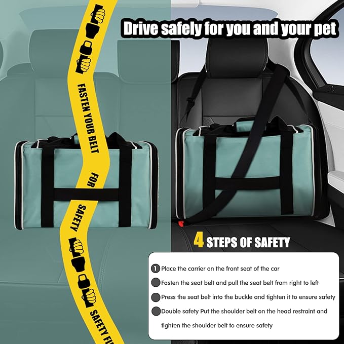 - 【AIRLINE APPROVED】: This cat carrier is designed with airline approved, it can fit comfortably under most flight seats, we can take our pets wherever we want. Dog travel carrier offers two attachment loop handles that can be used as a dual harness or as a luggage strap for balanced carry and secure transport.