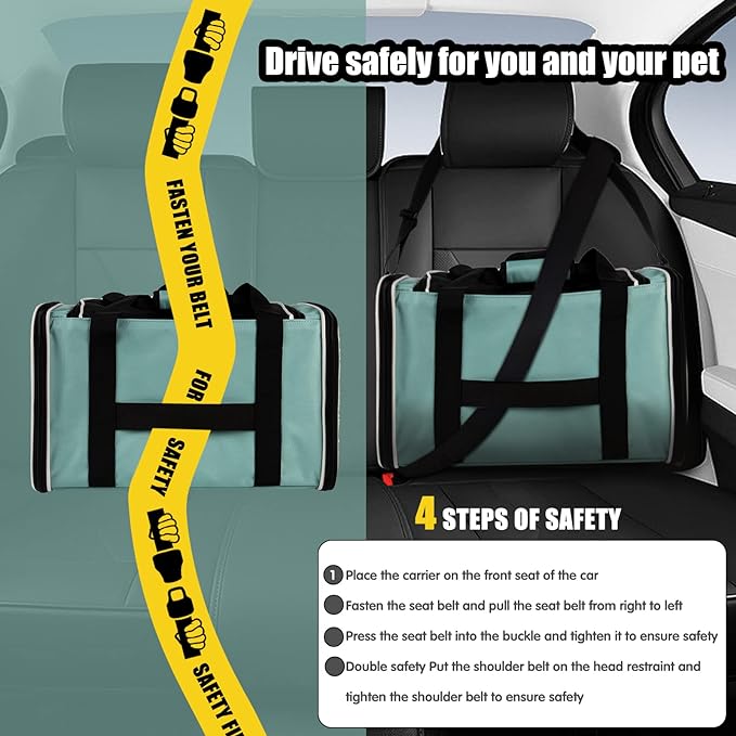 - [SAFE AND COMFORTABLE] Dog travel bag has metal zippers on the top and side entrances, durable and not easy to deform, it allows your pets to enter and exit easily. The cat carrying case is equipped with an anti-escape safety buckle, which can effectively prevent pets from accidentally falling. It is suitable for car rides and vet rides.