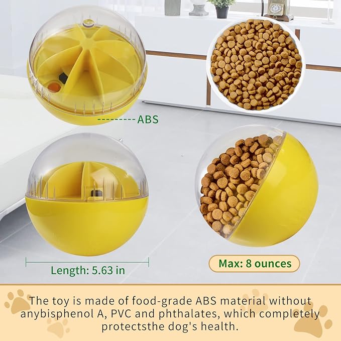- 🐾【Safety and Harmless Material】Wobble ball is made from food grade ABS+PC which are safe、durable and non-toxic. With raw materials and design safe, you can rest assured to use it for dogs. Anyway, please feel free to contact us if you have any problems with this dog treat ball.