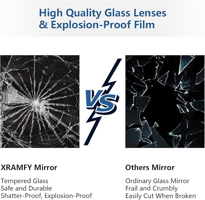 - Safety Explosion-Proof Glass : Our arched mirror is made of high quality explosion-proof film glass, the broken pieces of the mirror will not fall apart and splash. High image clarity, undistorted reflections, rust, moisture and oxidation resistance, and durability